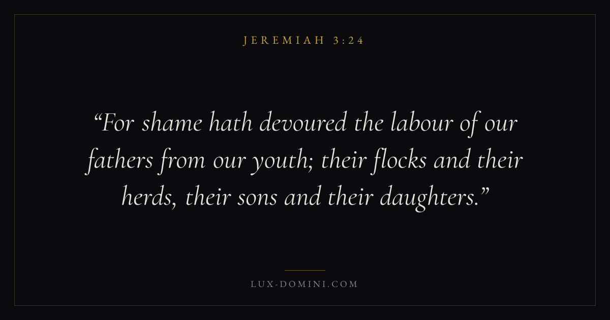For shame hath devoured the labour of our fathers from our youth; their flocks and their herds, their sons and their daughters.