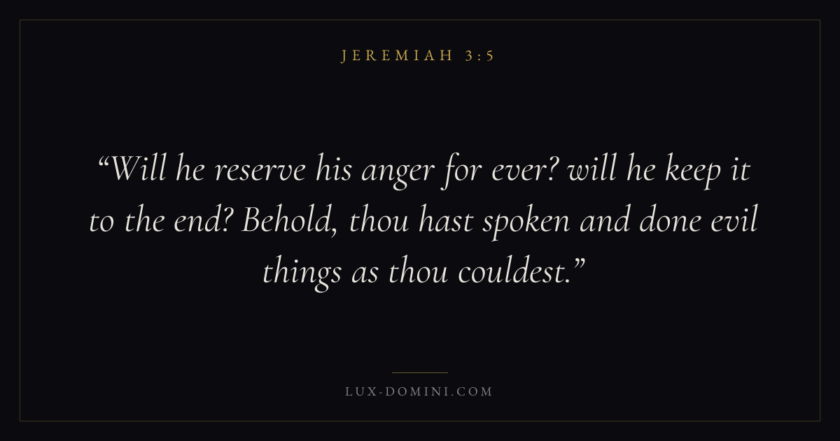Will he reserve his anger for ever? will he keep it to the end? Behold, thou hast spoken and done evil things as thou couldest.