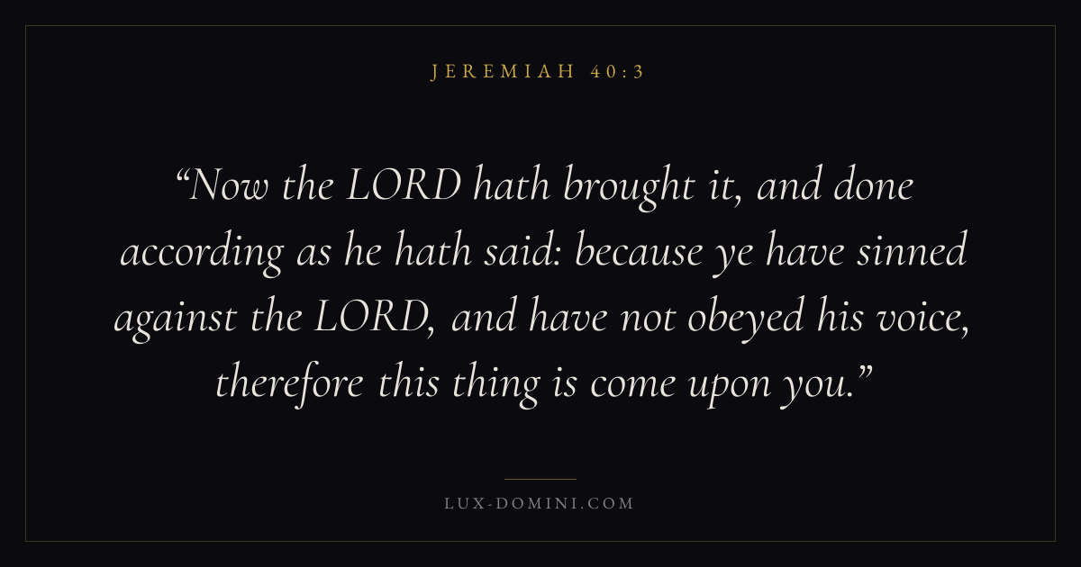 Now the LORD hath brought it, and done according as he hath said: because ye have sinned against the LORD, and have not obeyed his voice, therefore this thing is come upon you.