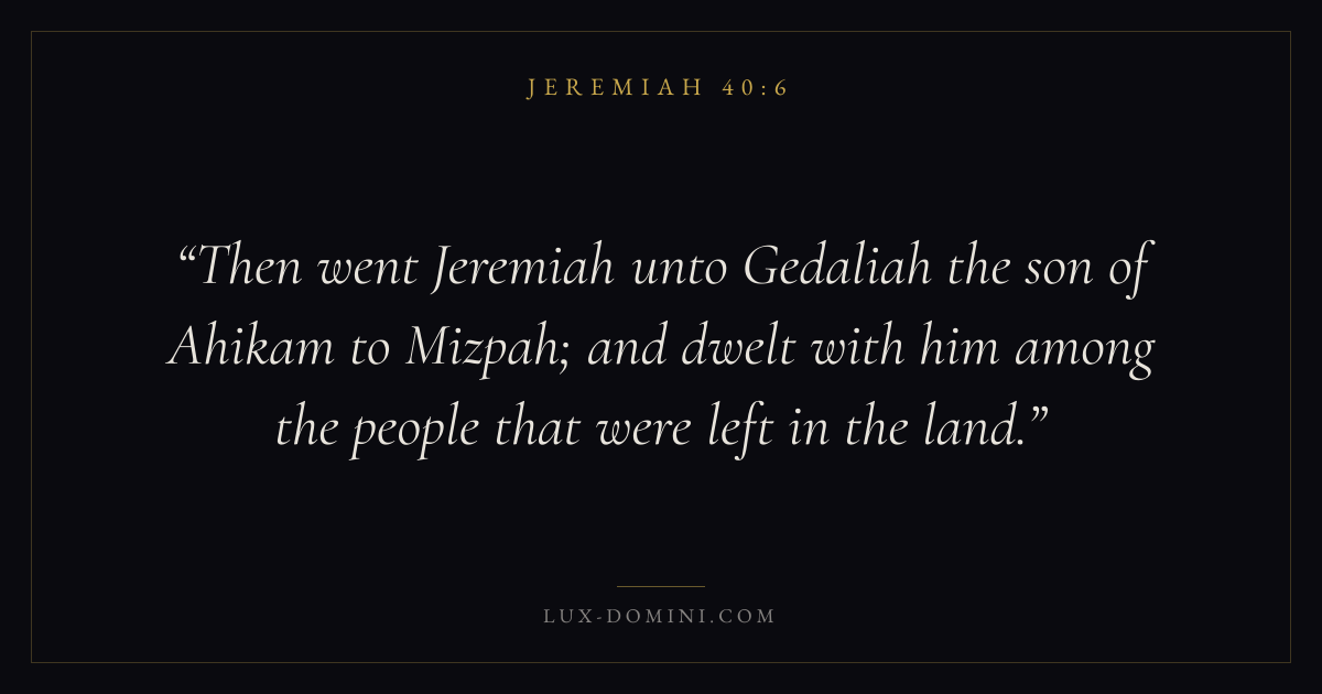 Then went Jeremiah unto Gedaliah the son of Ahikam to Mizpah; and dwelt with him among the people that were left in the land.