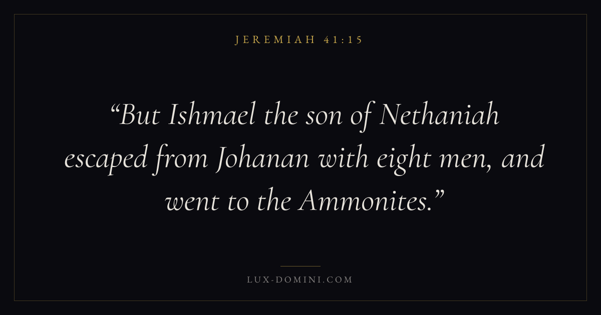 But Ishmael the son of Nethaniah escaped from Johanan with eight men, and went to the Ammonites.