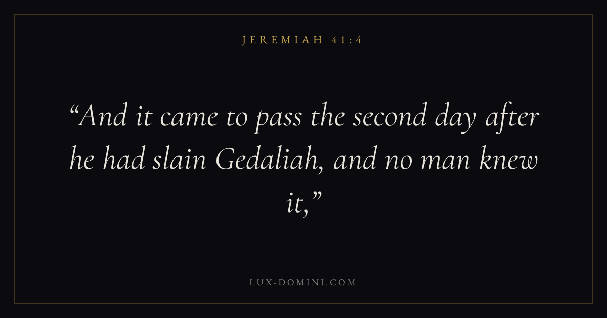 And it came to pass the second day after he had slain Gedaliah, and no man knew it,