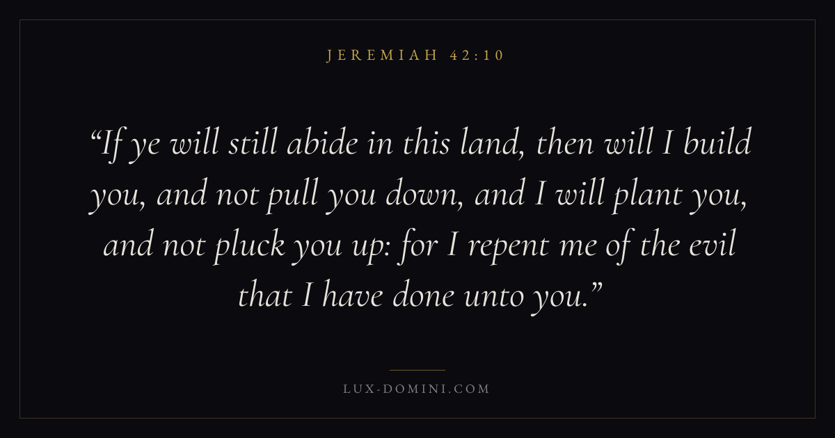 If ye will still abide in this land, then will I build you, and not pull you down, and I will plant you, and not pluck you up: for I repent me of the evil that I have done unto you.