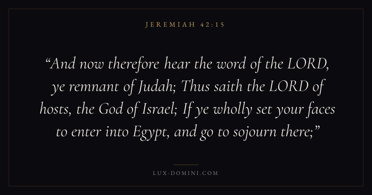 And now therefore hear the word of the LORD, ye remnant of Judah; Thus saith the LORD of hosts, the God of Israel; If ye wholly set your faces to enter into Egypt, and go to sojourn there;