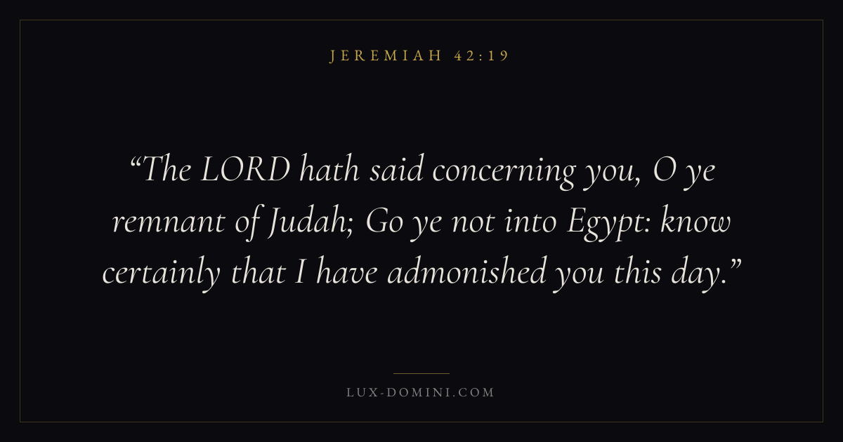 The LORD hath said concerning you, O ye remnant of Judah; Go ye not into Egypt: know certainly that I have admonished you this day.