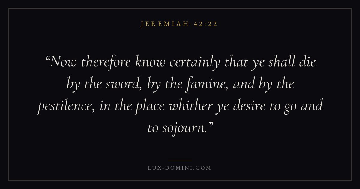 Now therefore know certainly that ye shall die by the sword, by the famine, and by the pestilence, in the place whither ye desire to go and to sojourn.
