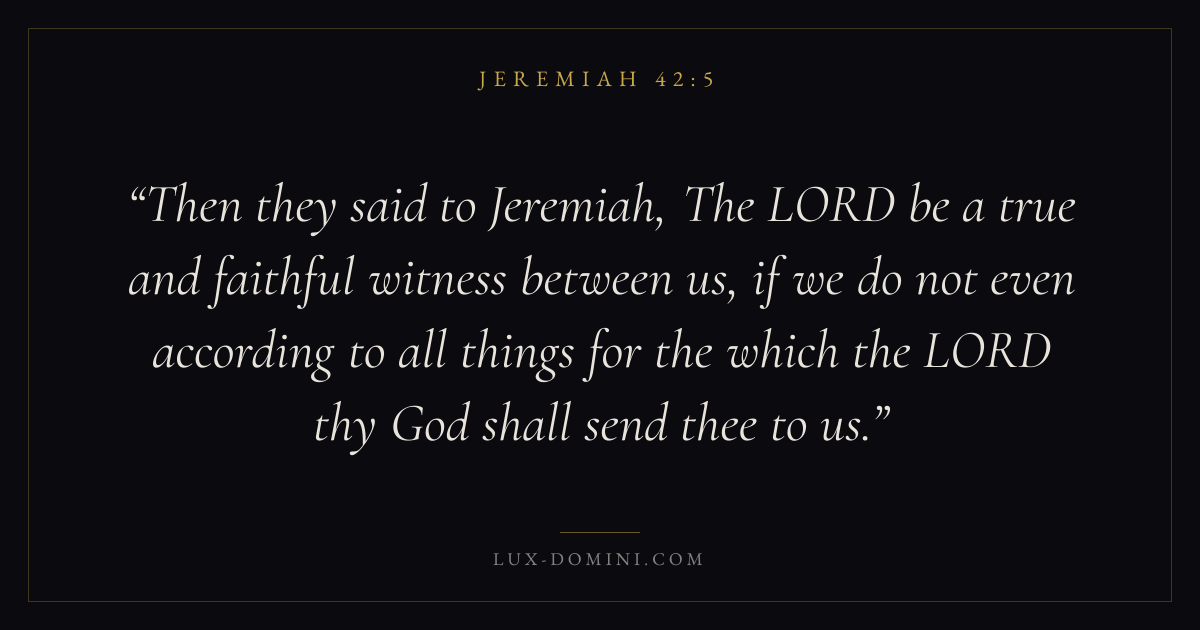 Then they said to Jeremiah, The LORD be a true and faithful witness between us, if we do not even according to all things for the which the LORD thy God shall send thee to us.