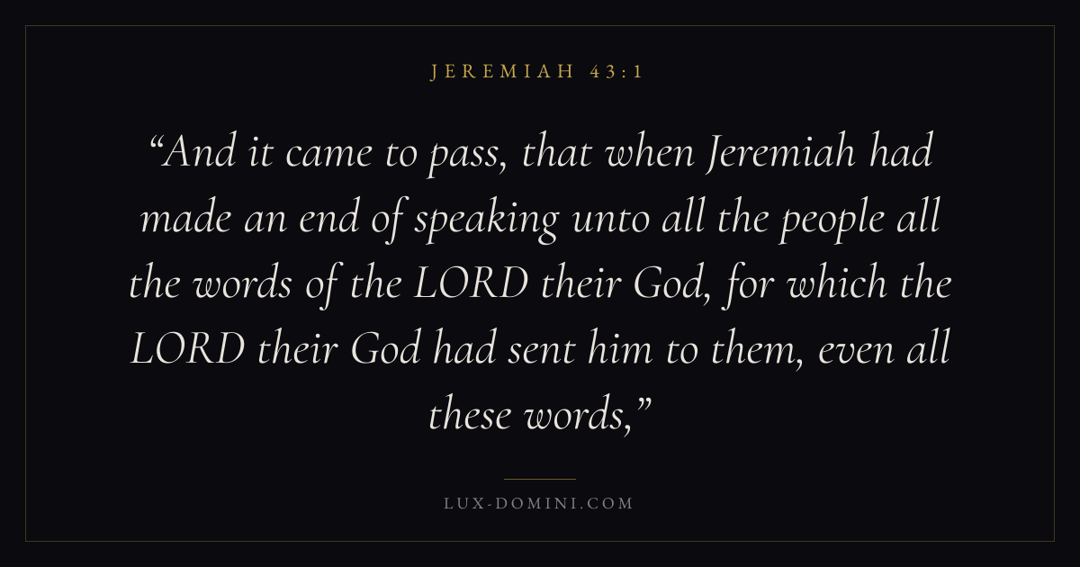 And it came to pass, that when Jeremiah had made an end of speaking unto all the people all the words of the LORD their God, for which the LORD their God had sent him to them, even all these words,