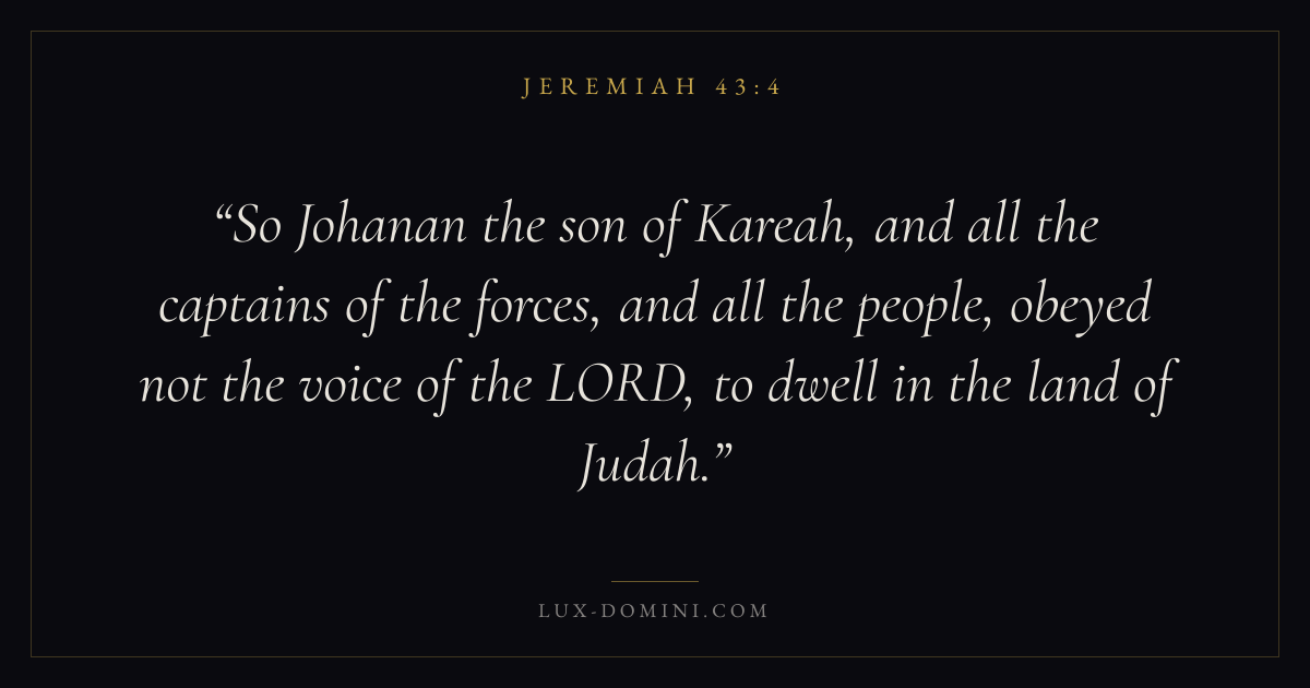 So Johanan the son of Kareah, and all the captains of the forces, and all the people, obeyed not the voice of the LORD, to dwell in the land of Judah.