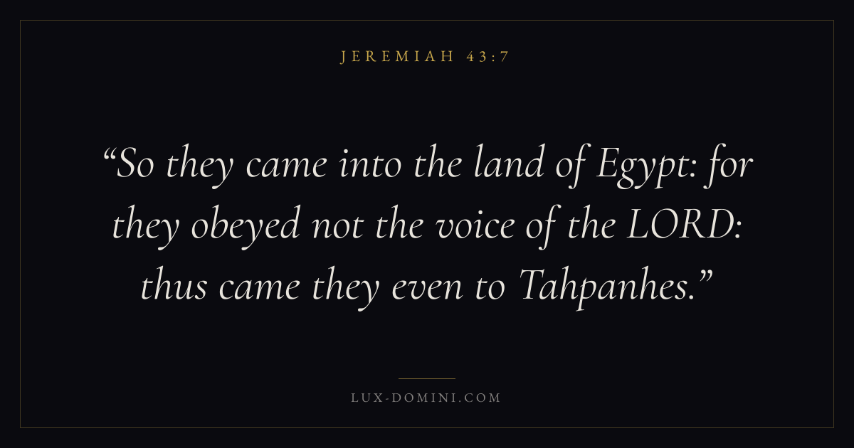 So they came into the land of Egypt: for they obeyed not the voice of the LORD: thus came they even to Tahpanhes.