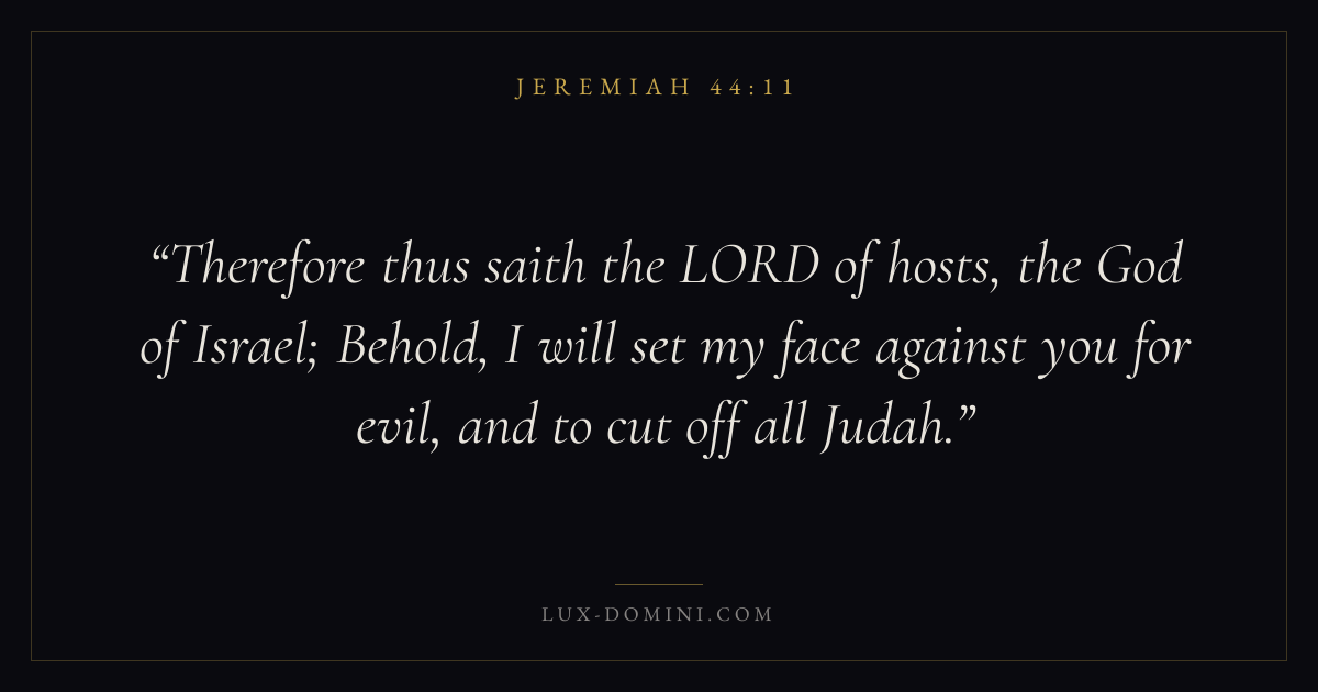 Therefore thus saith the LORD of hosts, the God of Israel; Behold, I will set my face against you for evil, and to cut off all Judah.
