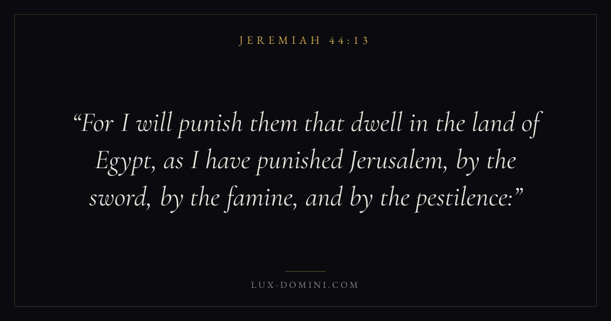 For I will punish them that dwell in the land of Egypt, as I have punished Jerusalem, by the sword, by the famine, and by the pestilence: