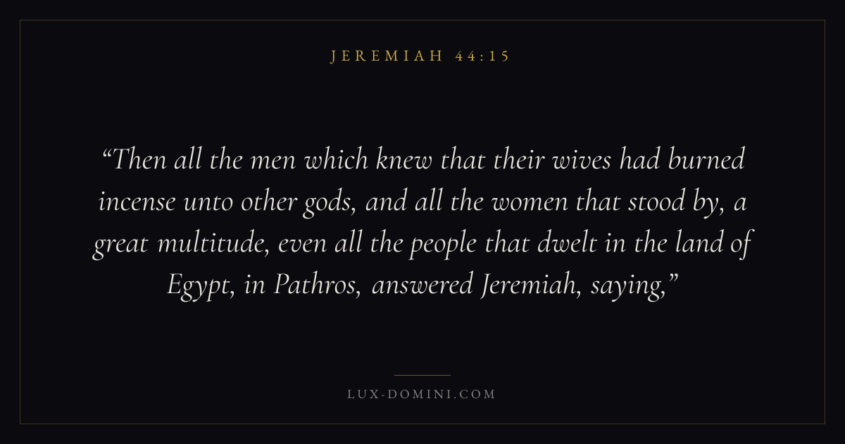Then all the men which knew that their wives had burned incense unto other gods, and all the women that stood by, a great multitude, even all the people that dwelt in the land of Egypt, in Pathros, answered Jeremiah, saying,