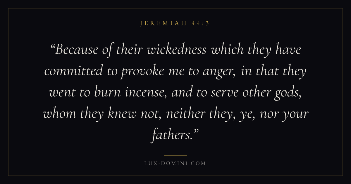 Because of their wickedness which they have committed to provoke me to anger, in that they went to burn incense, and to serve other gods, whom they knew not, neither they, ye, nor your fathers.