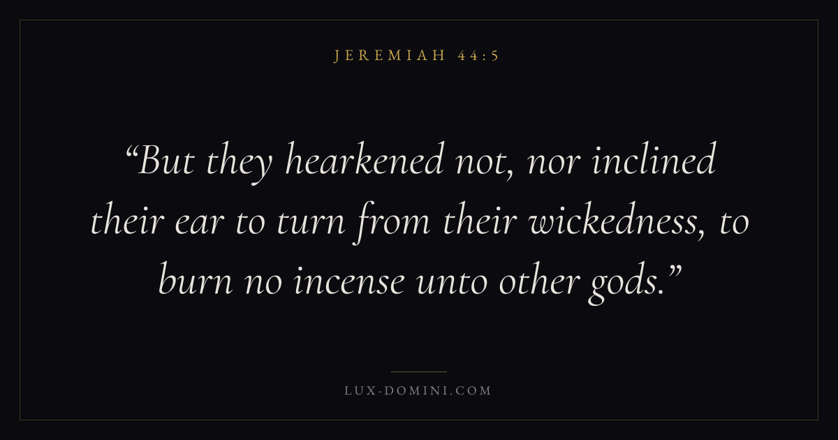 But they hearkened not, nor inclined their ear to turn from their wickedness, to burn no incense unto other gods.