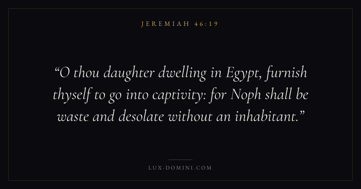 O thou daughter dwelling in Egypt, furnish thyself to go into captivity: for Noph shall be waste and desolate without an inhabitant.