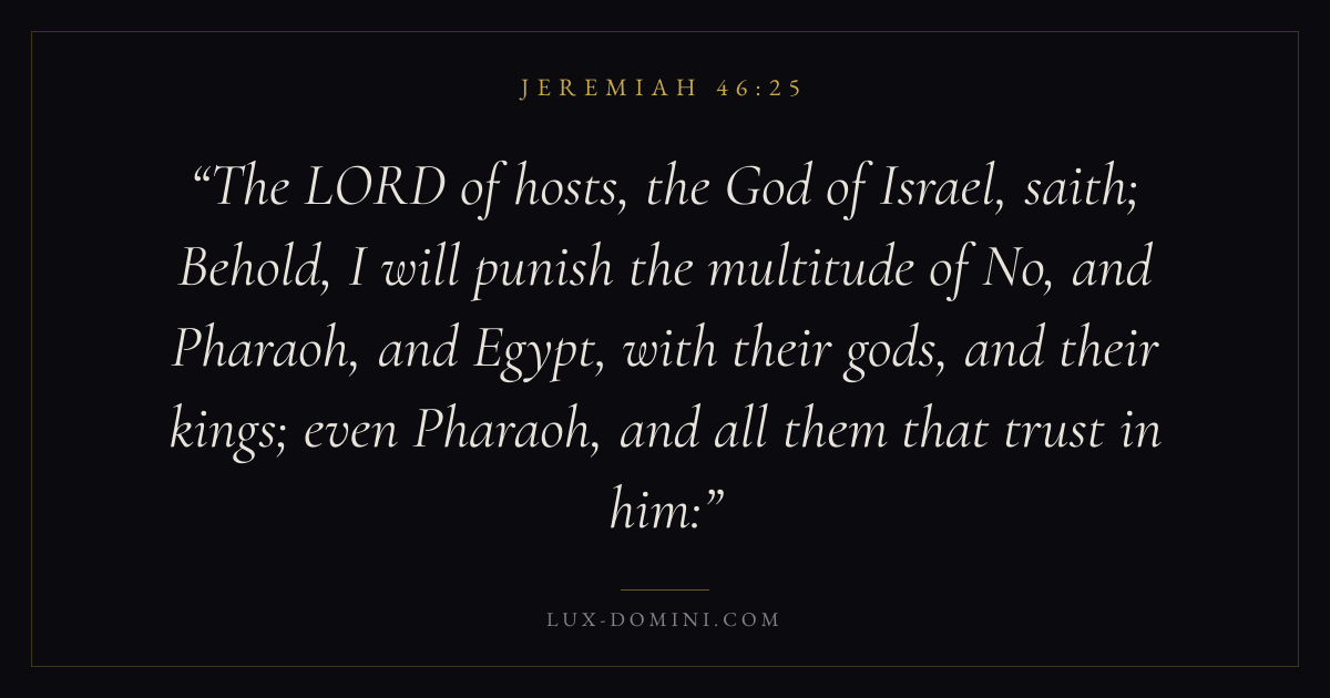 The LORD of hosts, the God of Israel, saith; Behold, I will punish the multitude of No, and Pharaoh, and Egypt, with their gods, and their kings; even Pharaoh, and all them that trust in him: