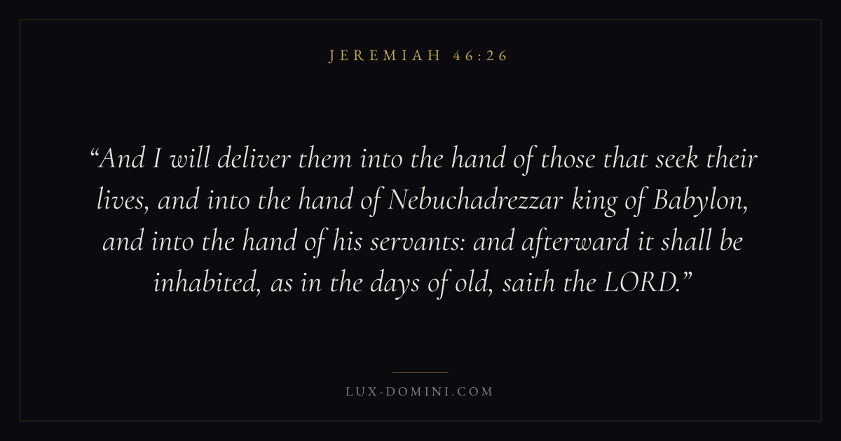 And I will deliver them into the hand of those that seek their lives, and into the hand of Nebuchadrezzar king of Babylon, and into the hand of his servants: and afterward it shall be inhabited, as in the days of old, saith the LORD.