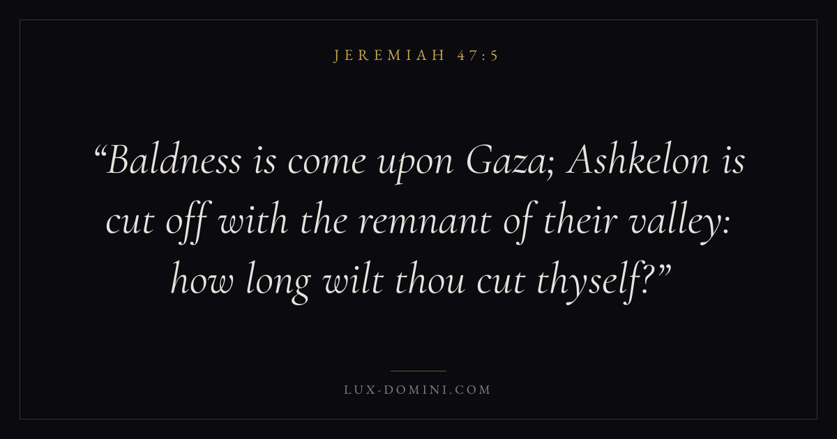 Baldness is come upon Gaza; Ashkelon is cut off with the remnant of their valley: how long wilt thou cut thyself?