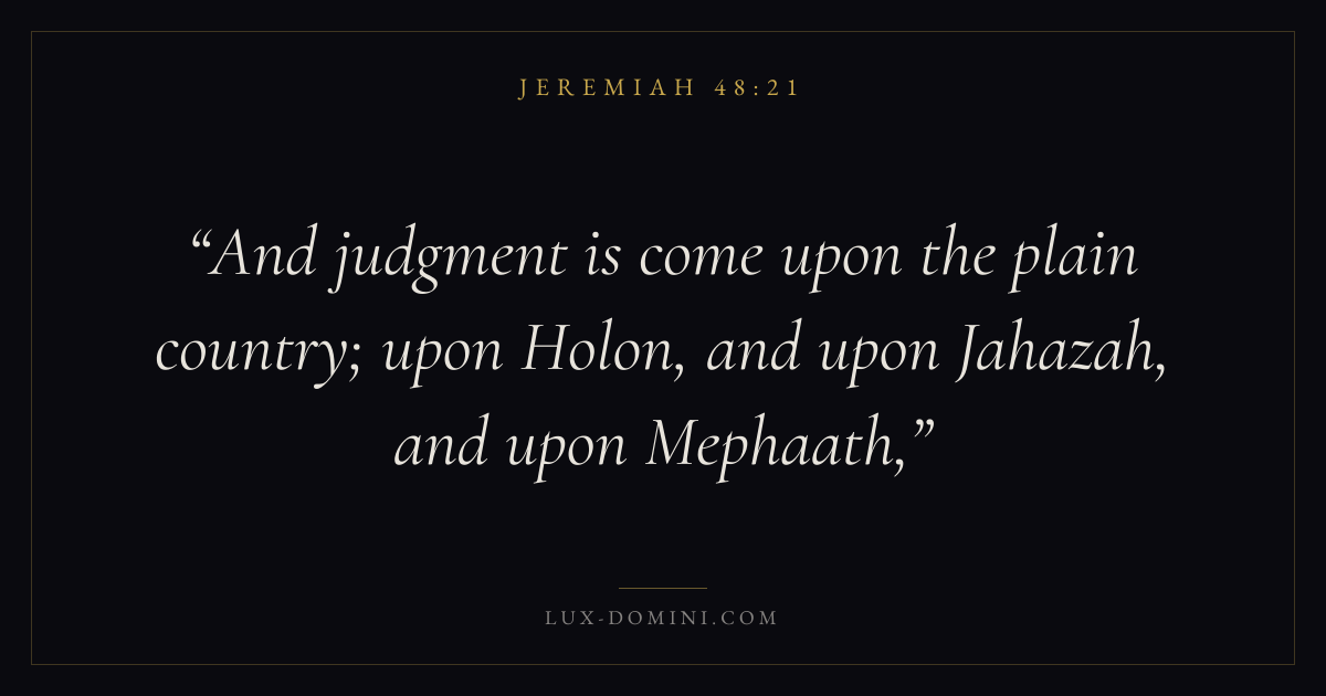 And judgment is come upon the plain country; upon Holon, and upon Jahazah, and upon Mephaath,