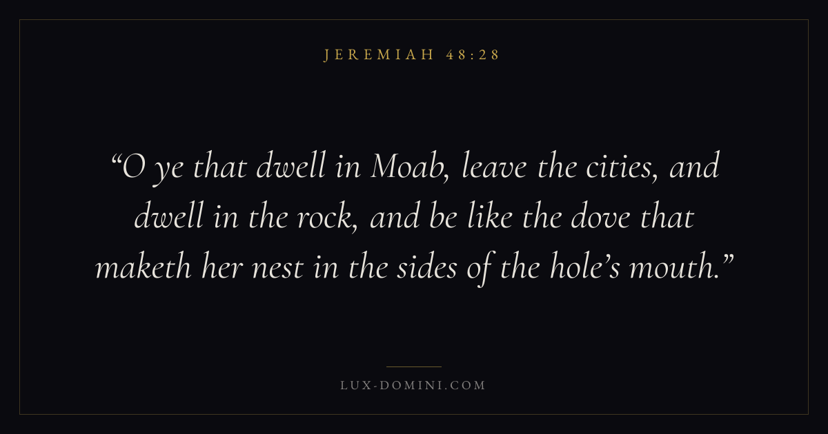 O ye that dwell in Moab, leave the cities, and dwell in the rock, and be like the dove that maketh her nest in the sides of the hole’s mouth.