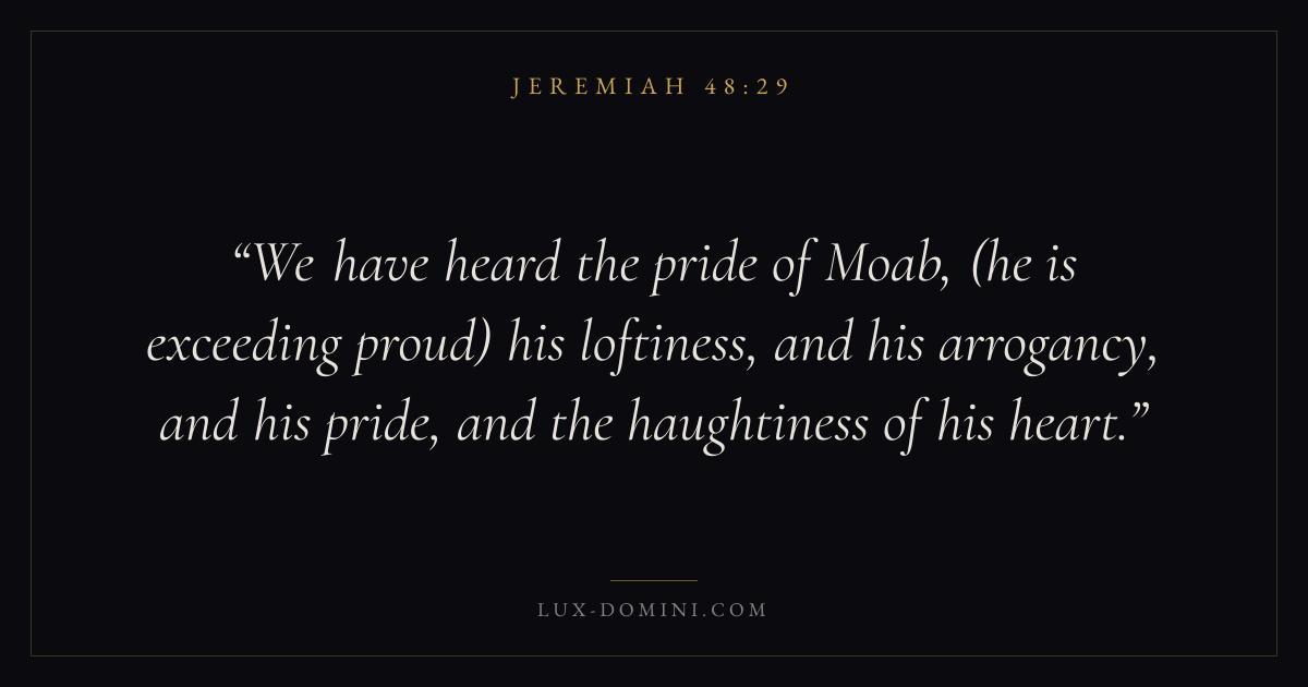 We have heard the pride of Moab, (he is exceeding proud) his loftiness, and his arrogancy, and his pride, and the haughtiness of his heart.