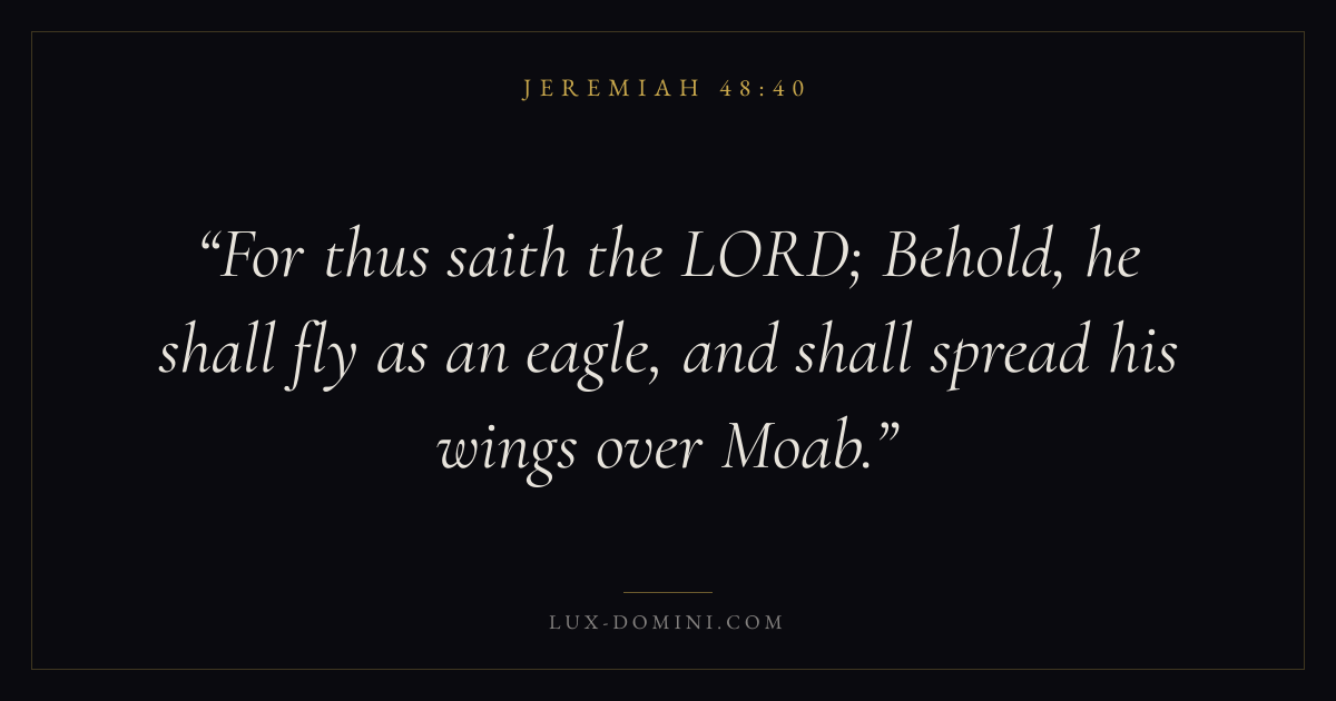 For thus saith the LORD; Behold, he shall fly as an eagle, and shall spread his wings over Moab.