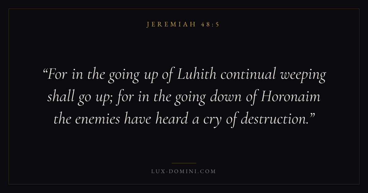 For in the going up of Luhith continual weeping shall go up; for in the going down of Horonaim the enemies have heard a cry of destruction.