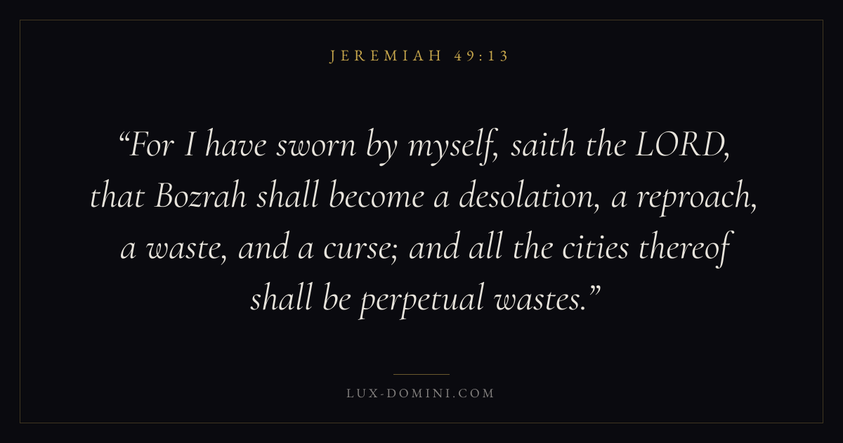 For I have sworn by myself, saith the LORD, that Bozrah shall become a desolation, a reproach, a waste, and a curse; and all the cities thereof shall be perpetual wastes.