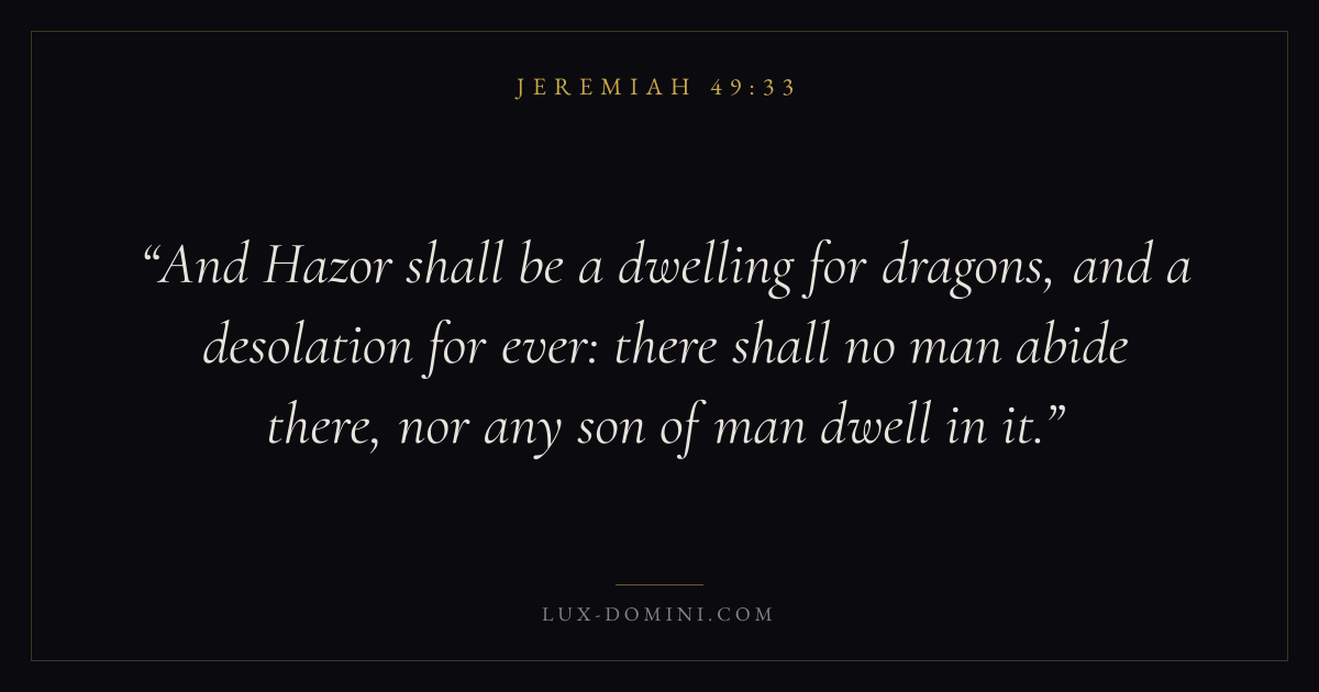 And Hazor shall be a dwelling for dragons, and a desolation for ever: there shall no man abide there, nor any son of man dwell in it.