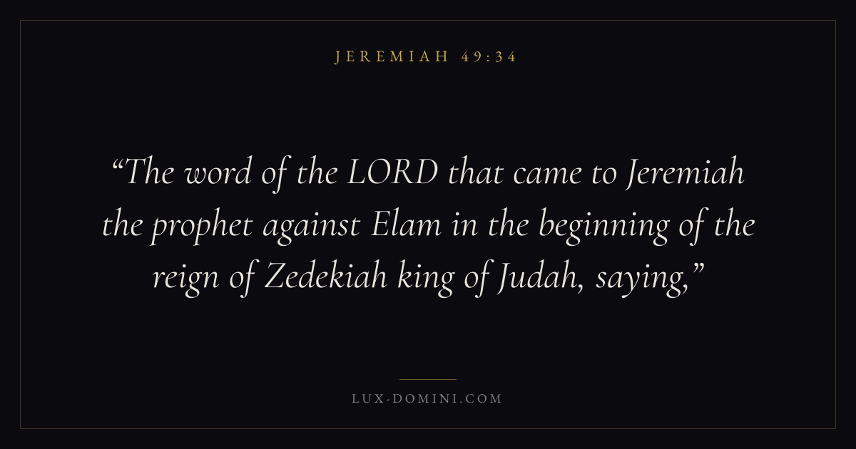 The word of the LORD that came to Jeremiah the prophet against Elam in the beginning of the reign of Zedekiah king of Judah, saying,