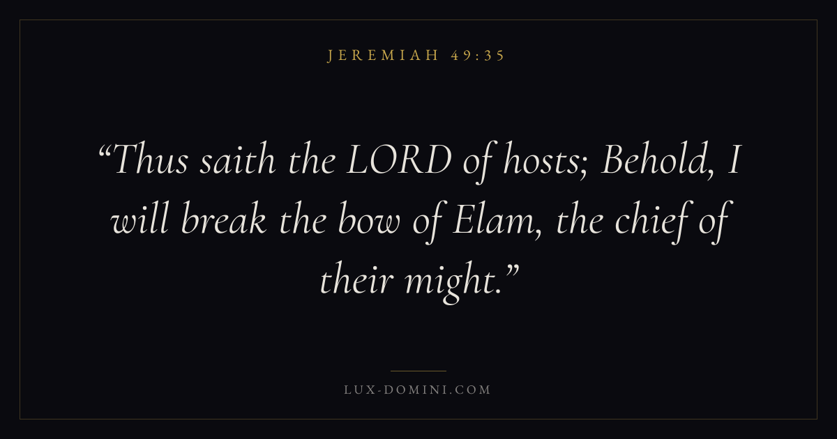 Thus saith the LORD of hosts; Behold, I will break the bow of Elam, the chief of their might.
