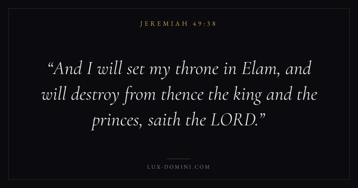 And I will set my throne in Elam, and will destroy from thence the king and the princes, saith the LORD.