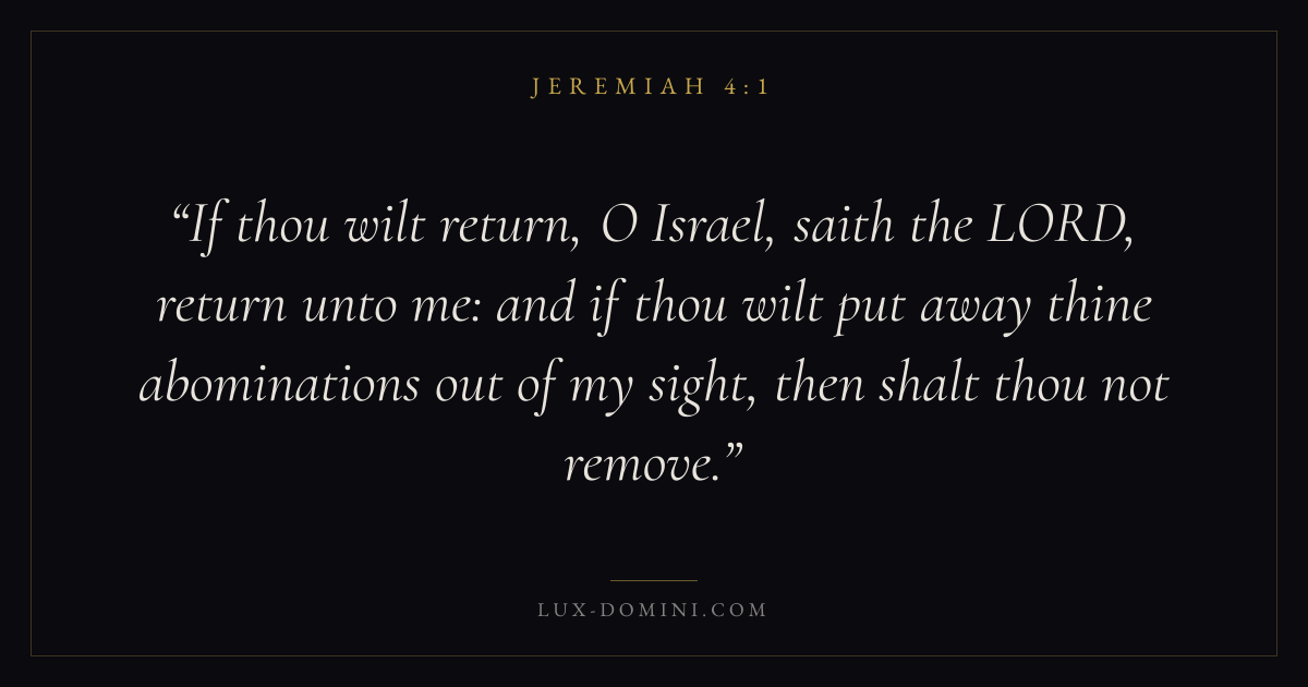 If thou wilt return, O Israel, saith the LORD, return unto me: and if thou wilt put away thine abominations out of my sight, then shalt thou not remove.