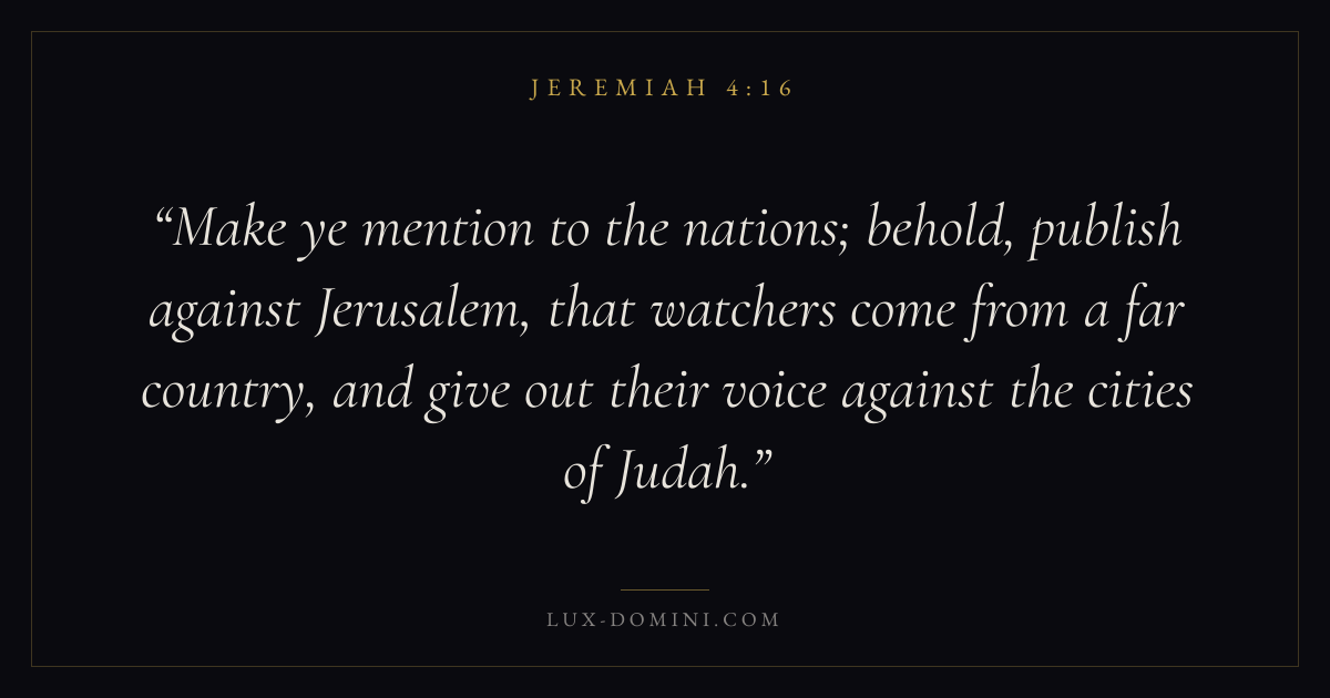 Make ye mention to the nations; behold, publish against Jerusalem, that watchers come from a far country, and give out their voice against the cities of Judah.