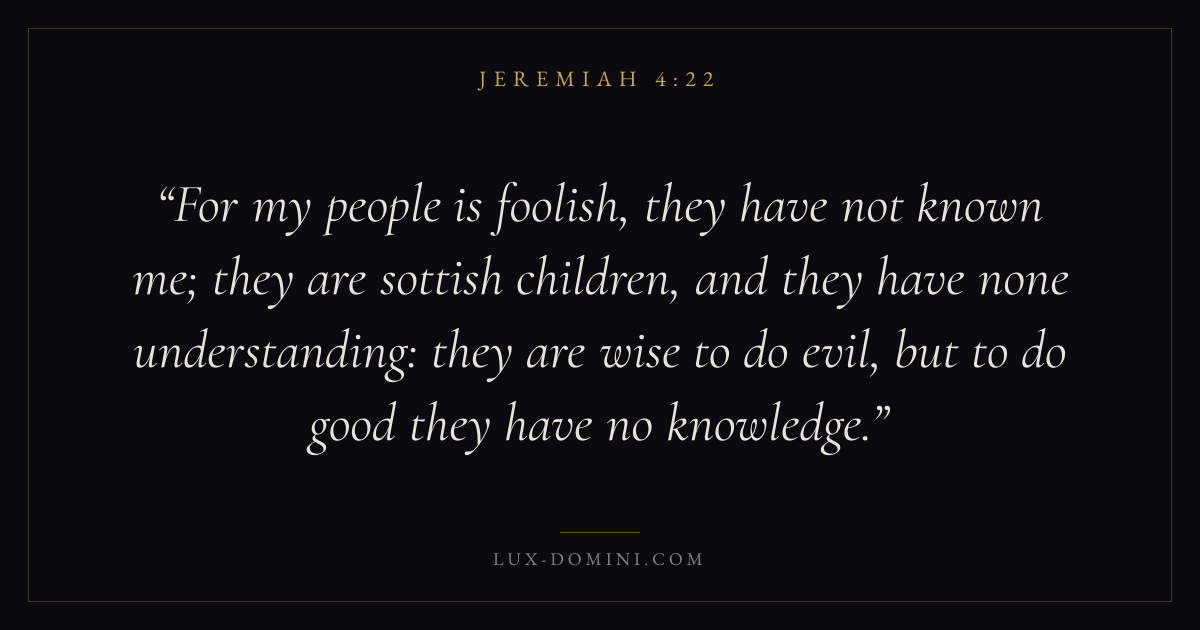 For my people is foolish, they have not known me; they are sottish children, and they have none understanding: they are wise to do evil, but to do good they have no knowledge.