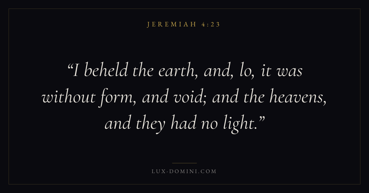 I beheld the earth, and, lo, it was without form, and void; and the heavens, and they had no light.