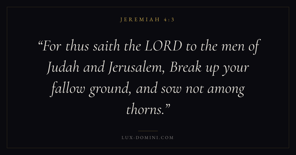 For thus saith the LORD to the men of Judah and Jerusalem, Break up your fallow ground, and sow not among thorns.