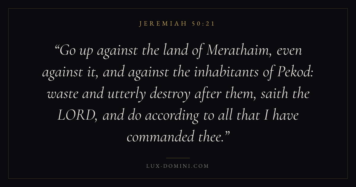 Go up against the land of Merathaim, even against it, and against the inhabitants of Pekod: waste and utterly destroy after them, saith the LORD, and do according to all that I have commanded thee.