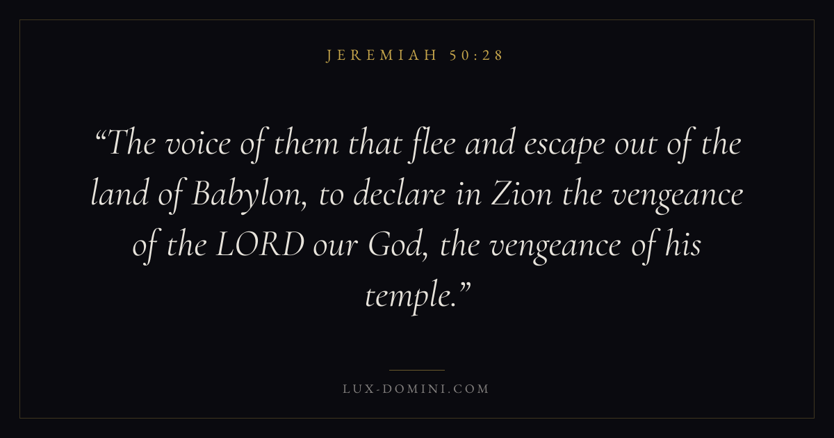 The voice of them that flee and escape out of the land of Babylon, to declare in Zion the vengeance of the LORD our God, the vengeance of his temple.