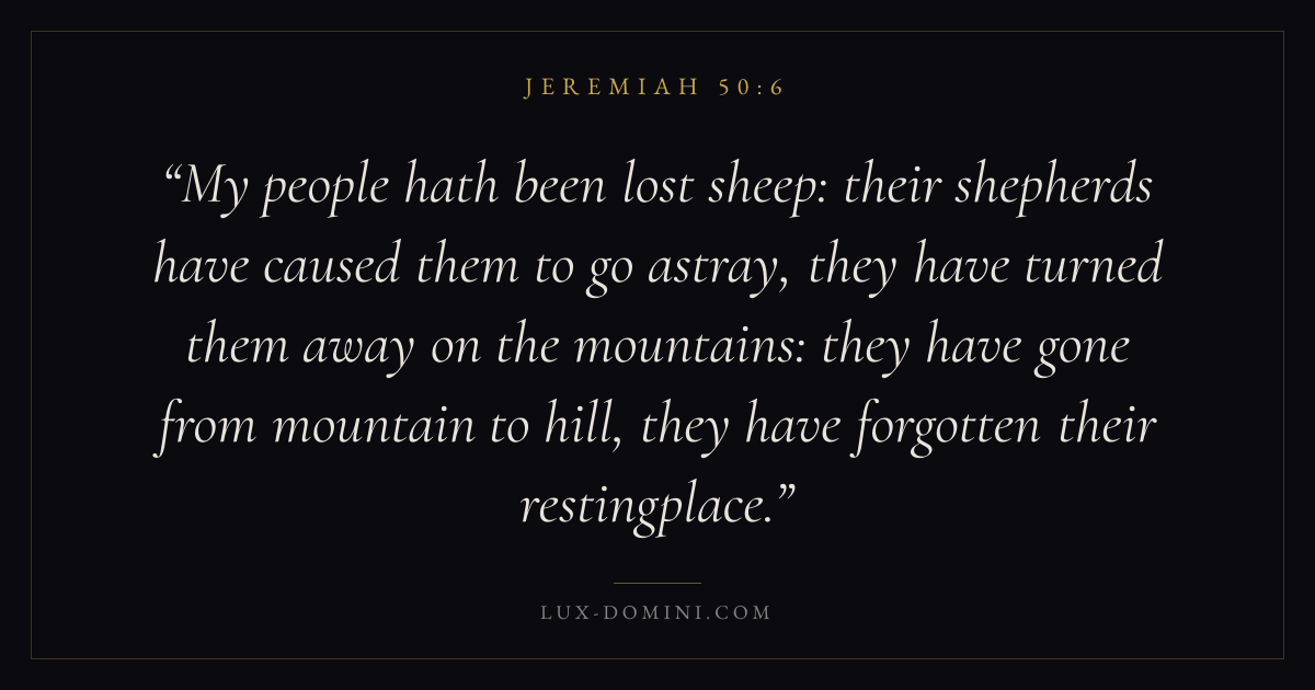 My people hath been lost sheep: their shepherds have caused them to go astray, they have turned them away on the mountains: they have gone from mountain to hill, they have forgotten their restingplace.