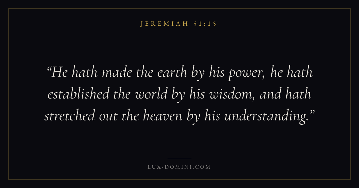 He hath made the earth by his power, he hath established the world by his wisdom, and hath stretched out the heaven by his understanding.