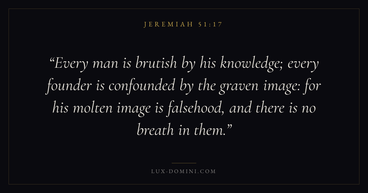 Every man is brutish by his knowledge; every founder is confounded by the graven image: for his molten image is falsehood, and there is no breath in them.