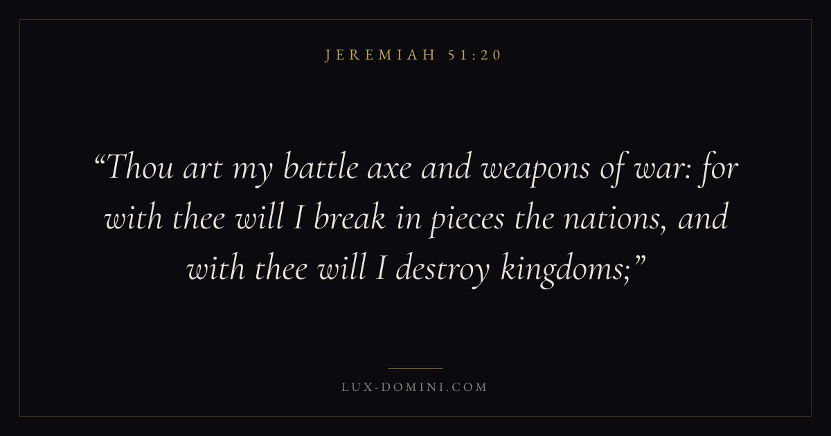 Thou art my battle axe and weapons of war: for with thee will I break in pieces the nations, and with thee will I destroy kingdoms;