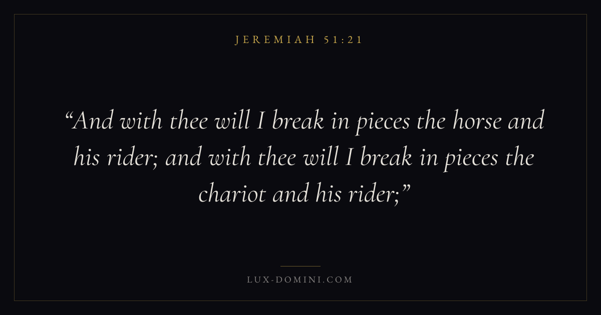 And with thee will I break in pieces the horse and his rider; and with thee will I break in pieces the chariot and his rider;