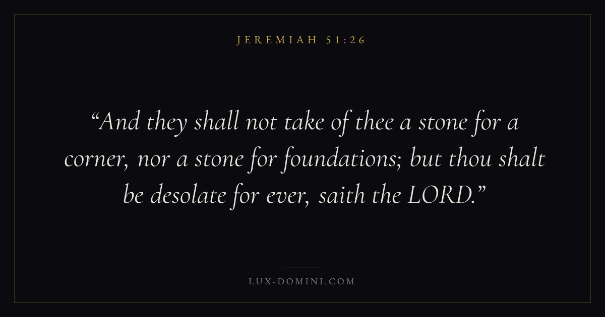 And they shall not take of thee a stone for a corner, nor a stone for foundations; but thou shalt be desolate for ever, saith the LORD.