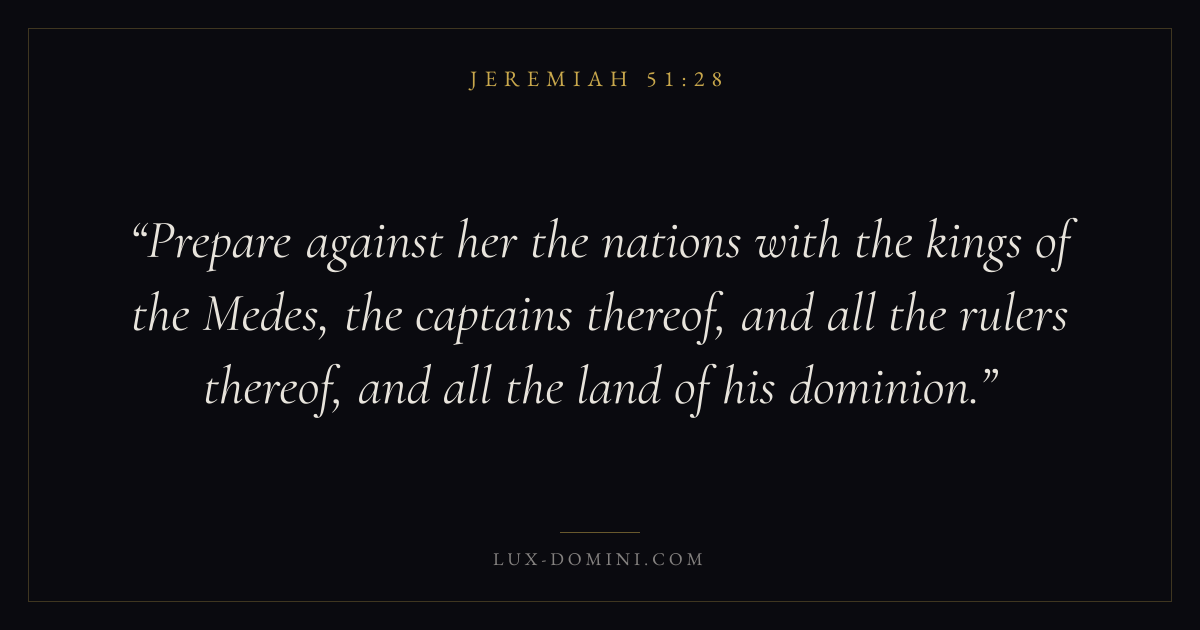 Prepare against her the nations with the kings of the Medes, the captains thereof, and all the rulers thereof, and all the land of his dominion.