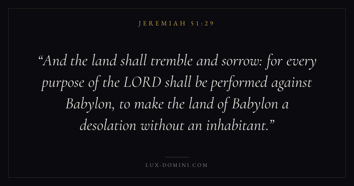 And the land shall tremble and sorrow: for every purpose of the LORD shall be performed against Babylon, to make the land of Babylon a desolation without an inhabitant.