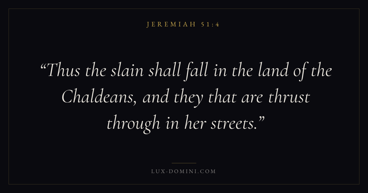 Thus the slain shall fall in the land of the Chaldeans, and they that are thrust through in her streets.