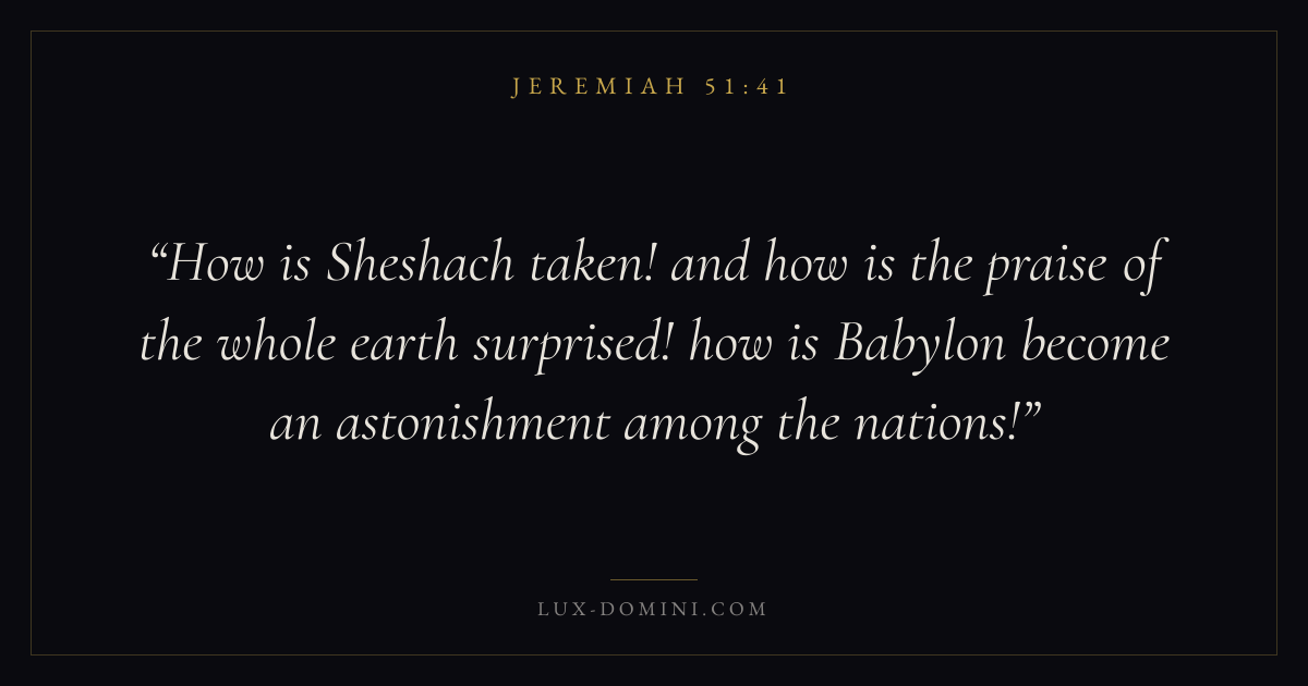 How is Sheshach taken! and how is the praise of the whole earth surprised! how is Babylon become an astonishment among the nations!